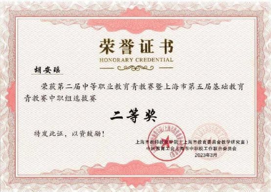 8)学校荣获第二届上海市中等职业教育青教赛暨上海市第五届基础教育青教赛中职组选拔赛优秀组织奖